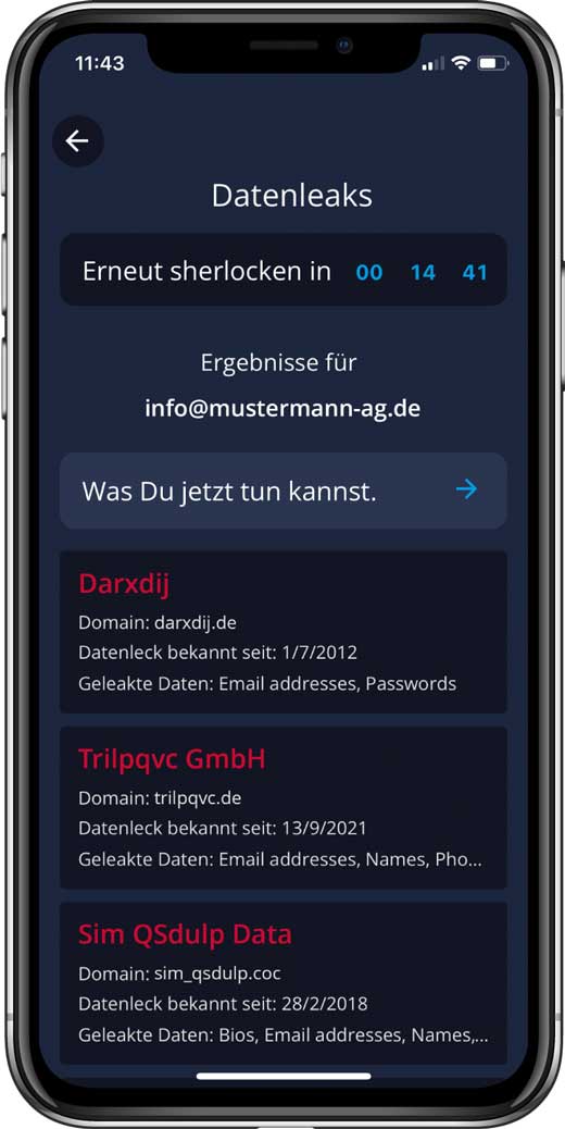 Dein Blick auf die Datenlecks ist ein Blick in die Vergangenheit: Erfahre, wo Deine Daten unrechtmäßig veröffentlicht und missbraucht wurden.